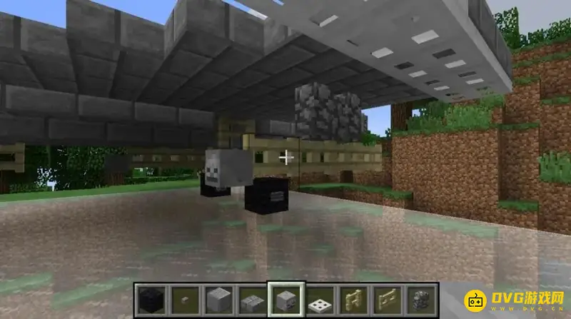 5、机头前面再补上一块石砖台阶和一块铁活板门。