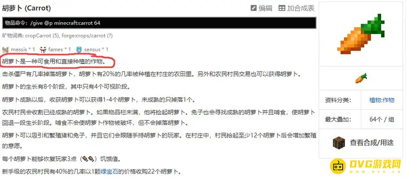 我的世界是没有胡萝卜种子的,所以不能获得胡萝卜种子。