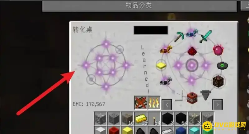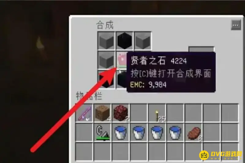 玩家进入游戏,查看制作转换桌所需材料:贤者之石,黑曜石,石头。