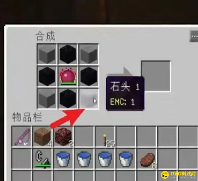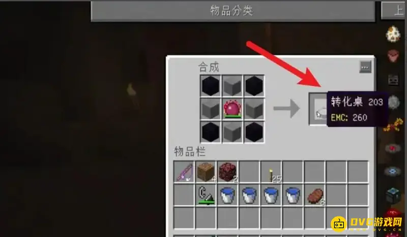合成贤者之石后,将4个黑曜石与4个石头,呈下图的方式摆放,即可合成转换桌: