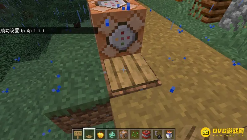 3,最后踩上踏板,就可以用命令方块传送位置了。