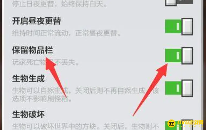 5、找到保留物品栏,将其开启即可。