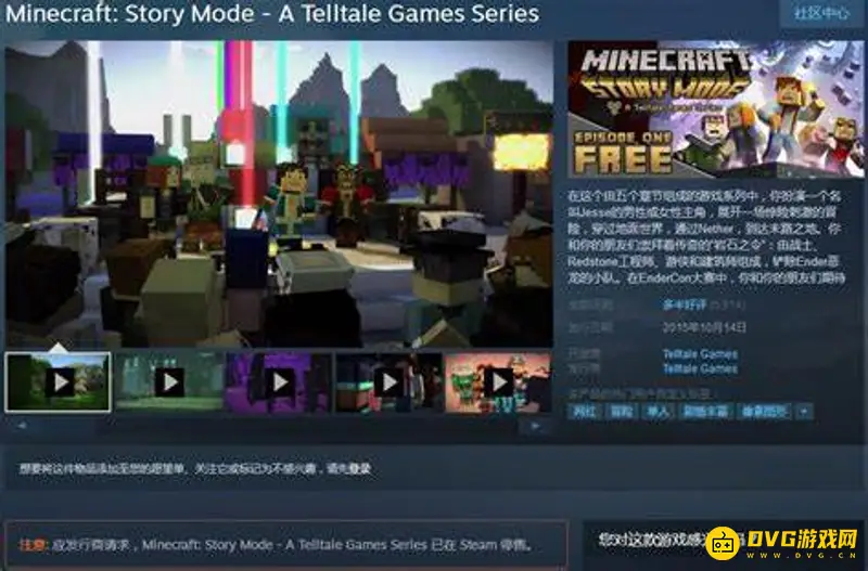 2.在2018年9月22日,Telltale工作室正式宣布倒闭,日前已经进入停业倒闭的流程,只剩下几位最核心的员工完成余后工作。从Steam的游戏销售页面可以看到《我的世界:故事模式》已经无法购买,游戏显示“应发行商请求游戏已经在Steam停售” 。