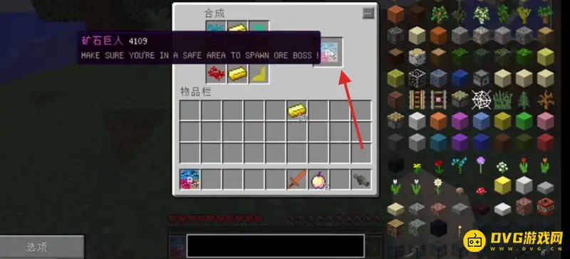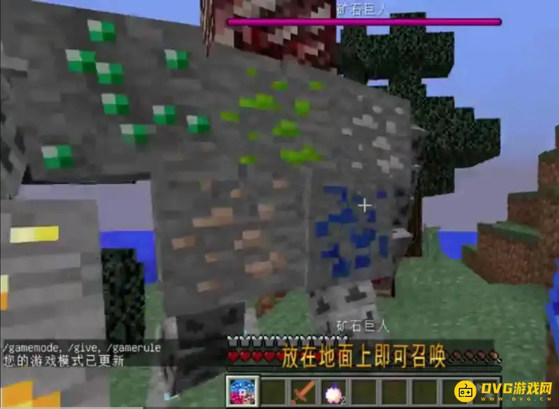 2、然后我们退出工作台,拿着矿石巨人召唤物,放在地面上即可召唤矿石巨人。