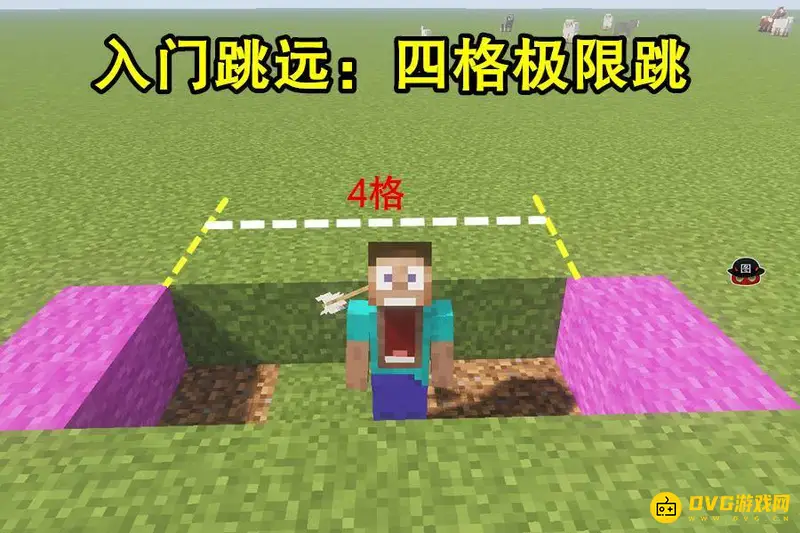 1、当玩家跳跃落地时会有一个爆发性的速度加成,如果玩家能把握好这个时机进行疾跑跳跃即可跳过四格的距离。看起来很复杂,其实多实践几次就能掌握其中的技巧。