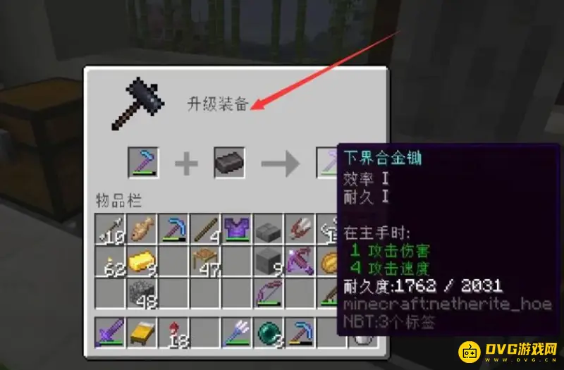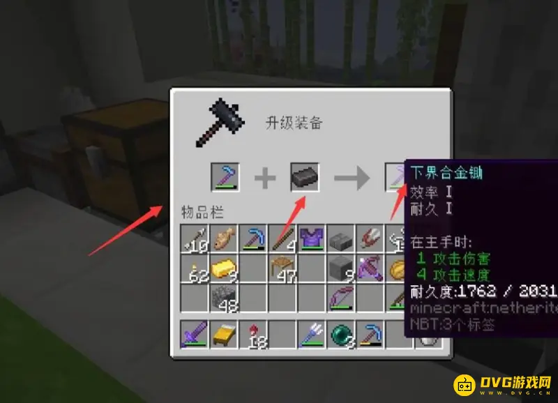 5.添加武器和下界合金碎片,选择升级即可获得下界合金武器。