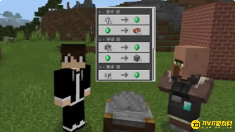 2.交易。新手级别的石匠村民以1个绿宝石的价格出售10个红砖,可以与石匠村民进行交易。