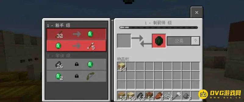 4.当有无职业村民变成制箭师后,玩家就可以和制箭师交易换取弓箭了。