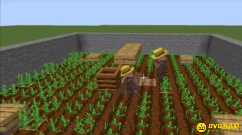 6、既然菜地都弄好了,那么这时候就该我们工具人村民上场了,因为是用创造建的可以直接放村民,如果在生存可以用矿产把村民运上来。再放上堆肥桶把村民的职业改成农民,还需要给村民一些胡萝卜或者土豆,这样村民才可以种地。即可成功建造经验农场。