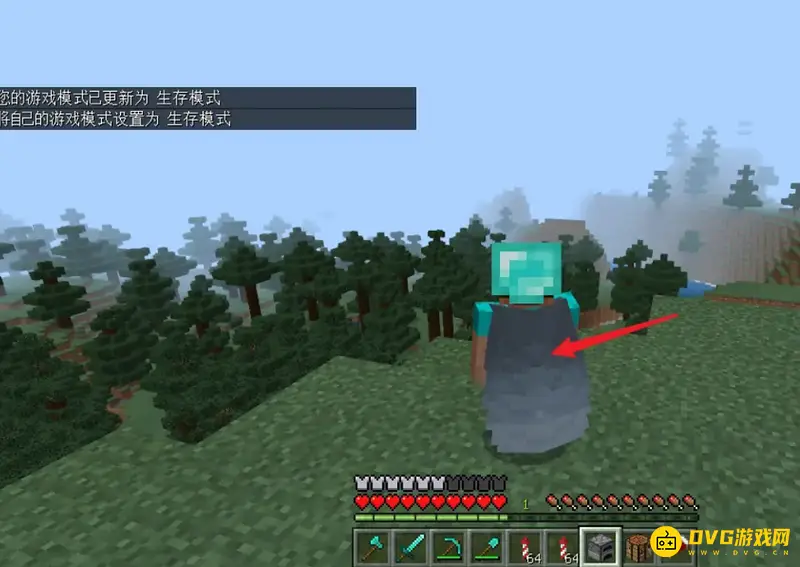 1.将鞘翅放入装备栏,就能装备到身上了,然后找一个高处站上去。