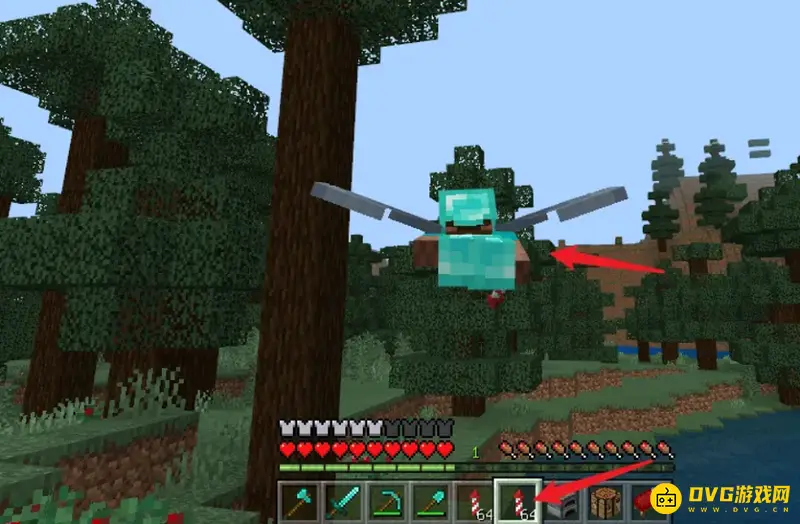 2.将烟花放入快捷物品栏后,从高处跳下。