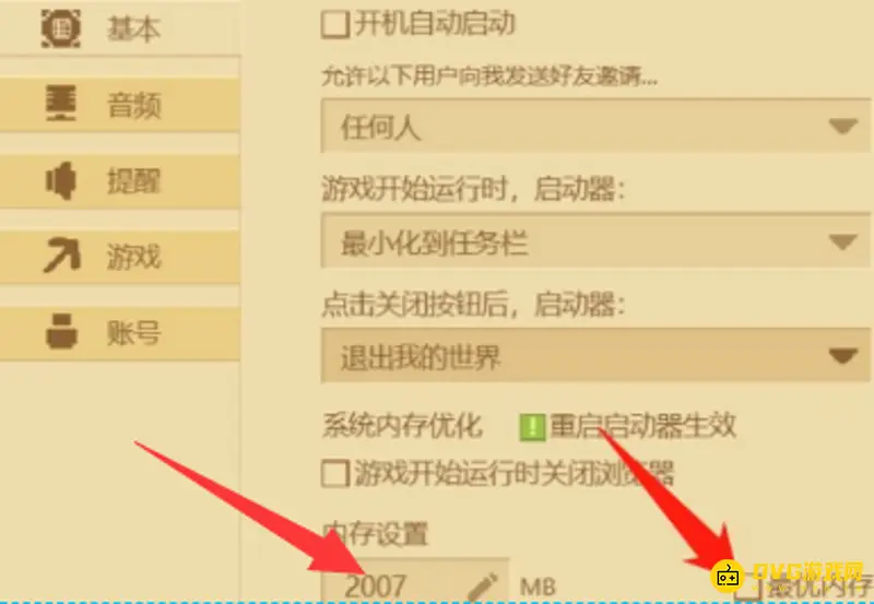 3、这时候我们点击选上最优内存设置,最后我们点击确认,然后进入游戏加载界面不会卡顿了,如果还是很卡顿的话,我们也可以把内存设置这个数值改大,从而解决卡在加载界面问题。