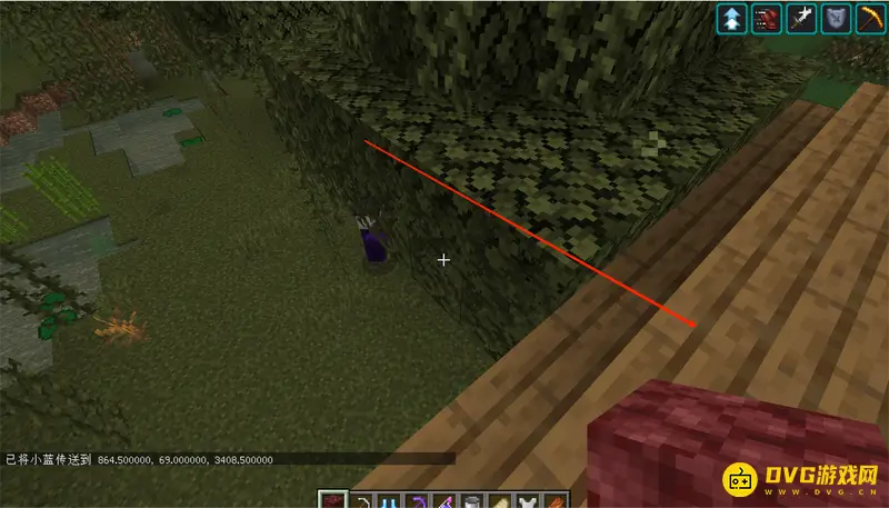 4、按下回车,玩家将会自动传送到目标地点。箭头所指即为女巫小屋。