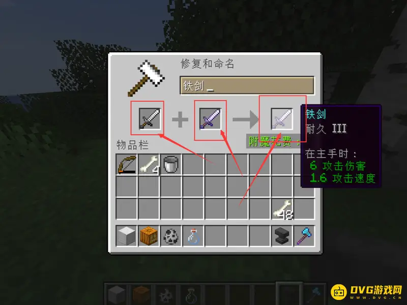 2、将需要附魔的装备,和作为附魔材料消耗的装备依次放入,花费一定经验即可转移附魔: