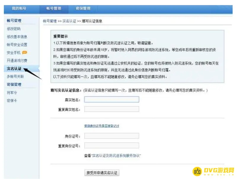 4.如果本来已经有保密邮箱的小伙伴就可以跳过以上的步骤了,直接点击账号管理,寻找左边有一个实名认证的选项点击,就会来到这个界面。
