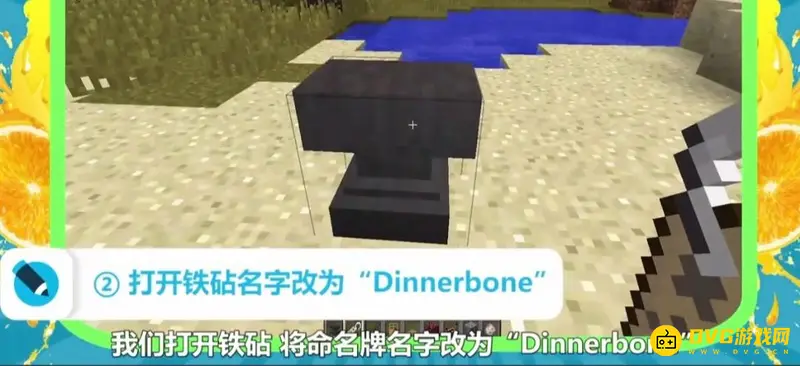 2.打开铁砧,将命名牌名字改为“Dinnerbone”。