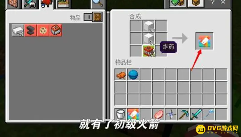1.首先得有星际模组,先创建一个火箭,主要是用两个铁块和1个TNT组成。