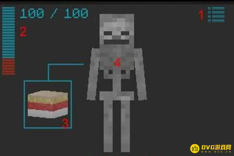 4、增强,要开始增强你将面对一个如下所示的屏幕:(1)索引按钮。可以点击此处查看您安装的机械物品的列表,以及有关要添加或删除的机械改造信息。(2)公差栏。您的容忍度有限,每次添加一个机械物品时,它会降低。幸运的是,您可以删除机械物品以获得此容差,但确保不要让此栏达到0,否则将在执行手术时死亡。(3)肉体的横截面。您可以点击此按钮访问肌肉,皮肤和骨骼插槽。(4)你的身体。单击头部,躯干,腿部或手臂以访问其插槽。