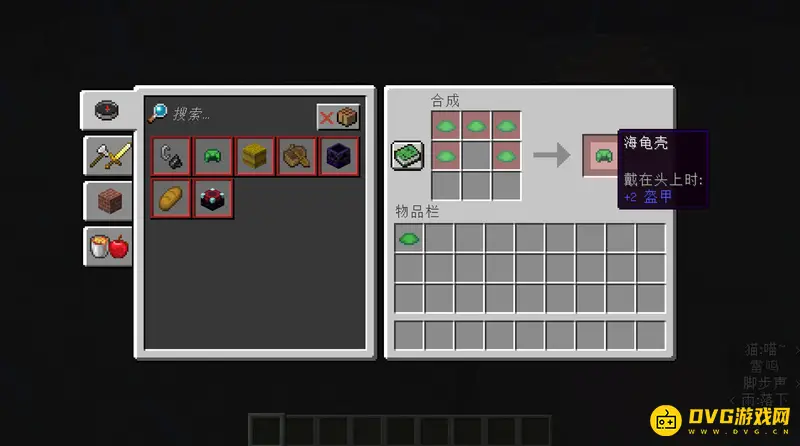 1、在游戏我的世界中,玩家击杀成年海龟会掉落麟甲,玩家可以在工作台中使用五个麟甲来合成海龟壳。