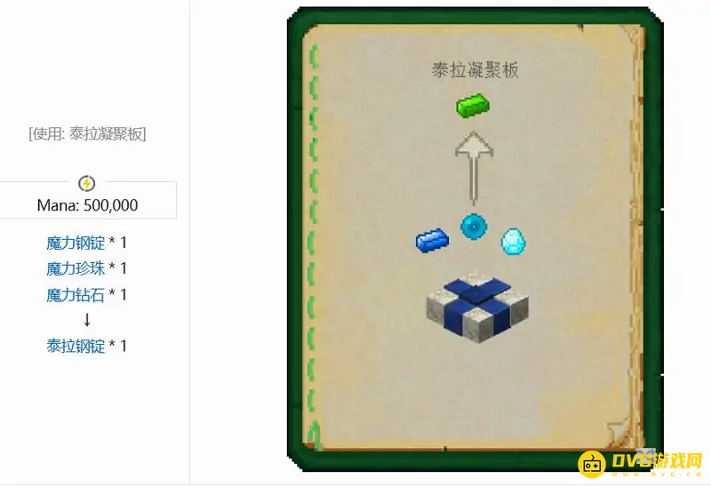 1.泰拉钢锭的合成方式有三种,第1种是用泰拉钢粒合成泰拉钢锭,需要9个泰拉钢粒可以合成一个泰拉钢锭。