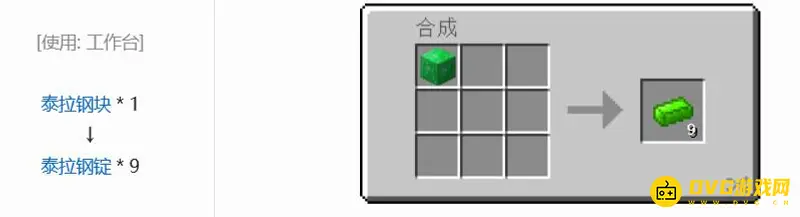 2.第2种合成方式是用泰拉钢块,一个泰拉钢块就可以合成出9个泰拉钢锭。