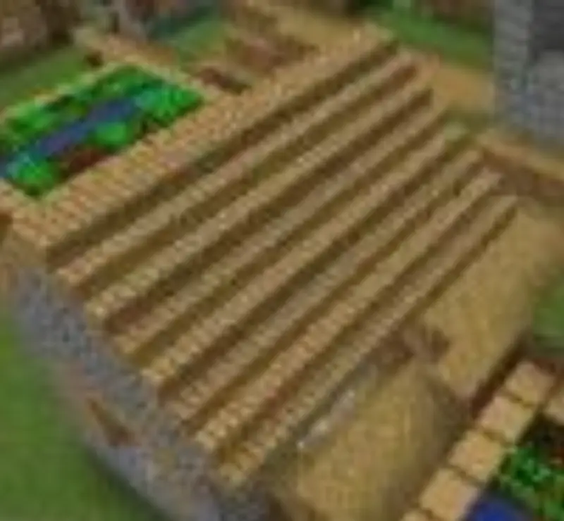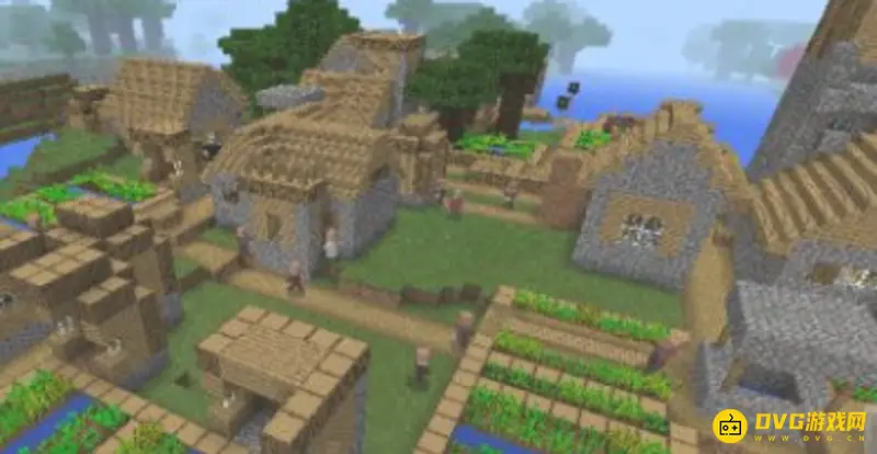 3.我们先要观察一下村庄的建筑特点,首先,房屋都是中间是尖的,两边都没屋檐,都是由橡木木板做的,墙壁都是由深色橡木木板做的。