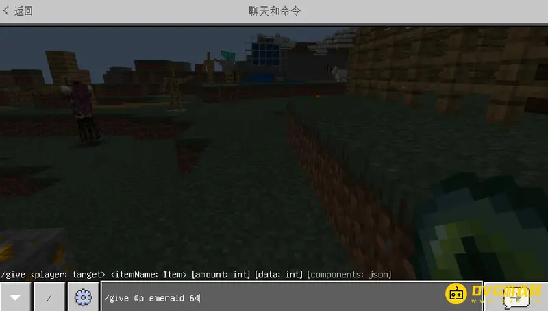 1,例如我们想获得绿宝石的话,可以在聊天框里输入带有绿宝石代码的指令/give @p emerald 64。