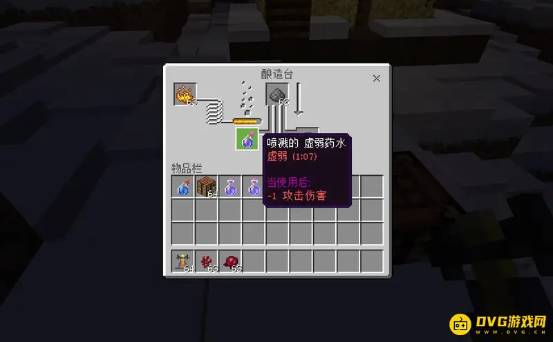3,最后放入火药,就可以合成喷溅型虚弱药水了。