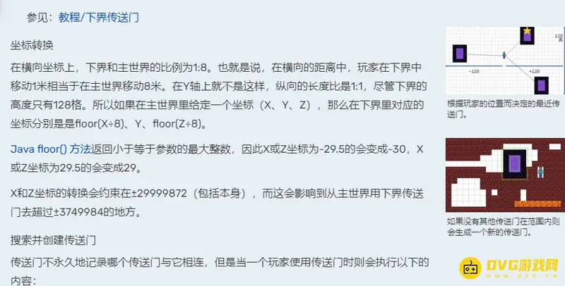 地狱和主世界的比例为1:8。也就是说,在横向的距离中,玩家在下界中移动1米相当于在主世界移动8米。在Y轴上就不是这样,纵向的长度比是1:1