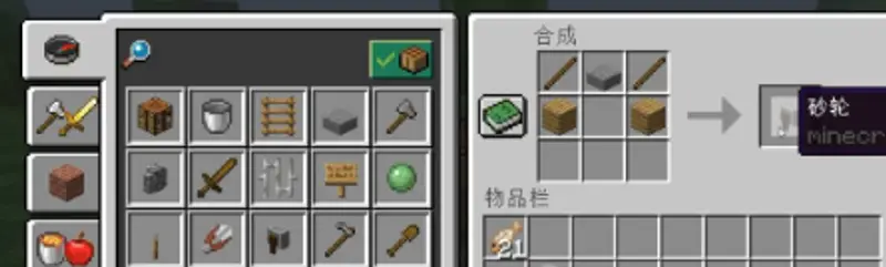 将两个木棍、一个石台阶、两个木板放在工作台上即可合成砂轮。
