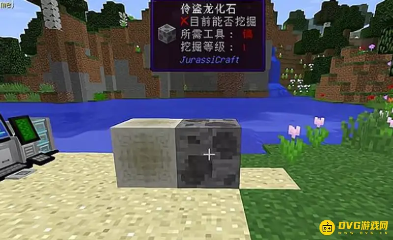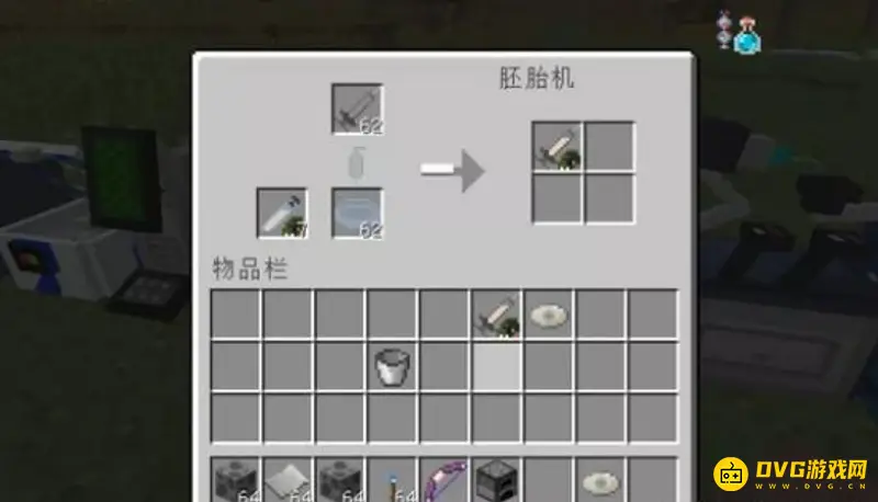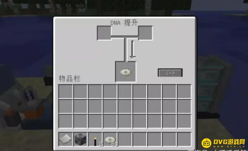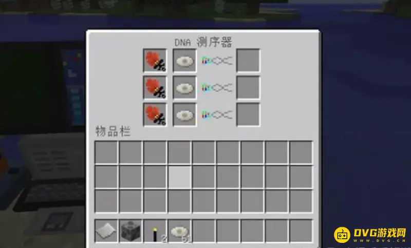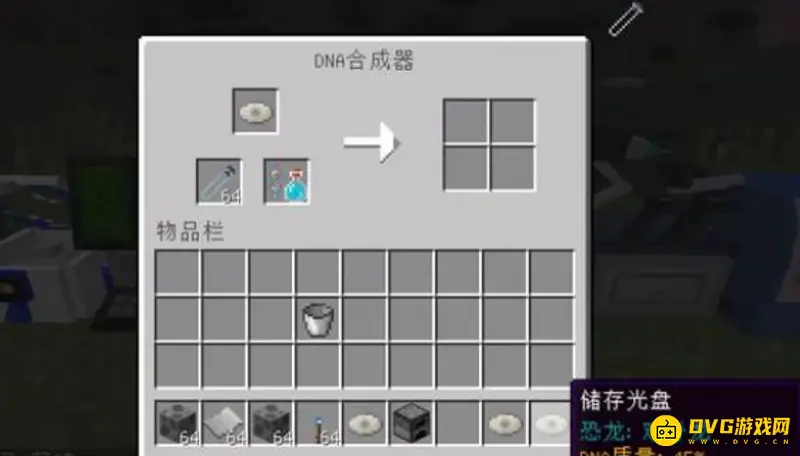 6、第六步用百分百DNA的光盘放入DNA合成器,接着放入试管还有核苷酸等待一会儿就可以得到带着恐龙DNA的试管。(核苷酸需要把水瓶放入熔炉烧一下就可以得到核苷酸)。