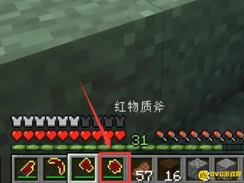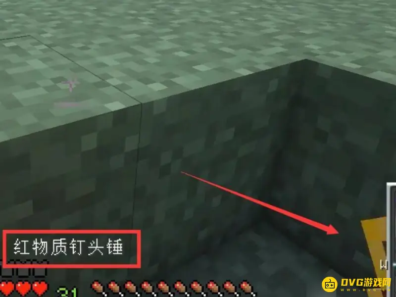 2、将红物质钉头锤拿在手上后,我们按下键盘的G键。