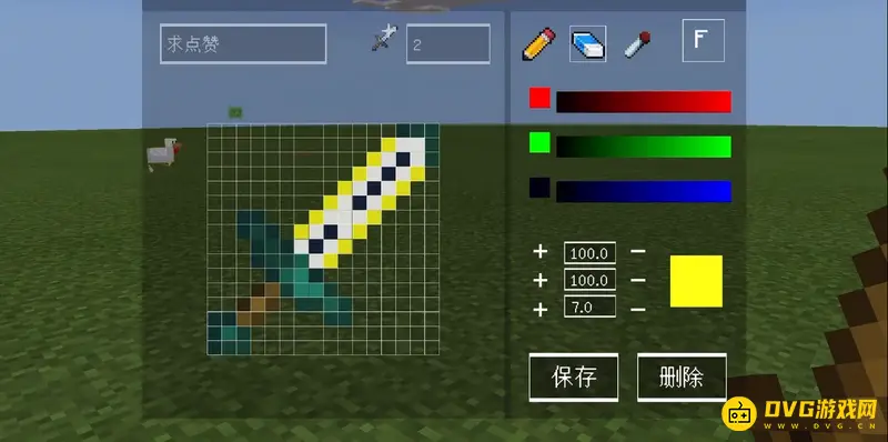 2、然后就可以按照自己的想法画武器,画好之后就可以拿出来使用了。以上就是对我的世界武器怎么画问题的介绍,希望可以帮助到你。