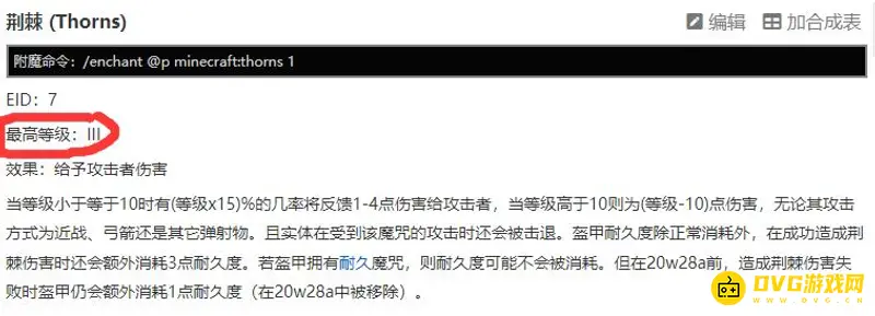 2,然后找到荆棘的相关说明,就可以发现荆棘最高三级了。