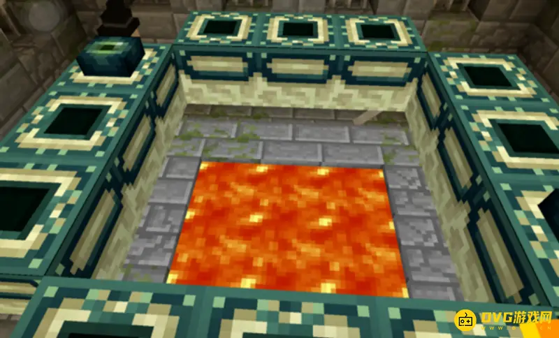 6、向前走,向右拐,看到房间后,房间中央就是末地传送门。