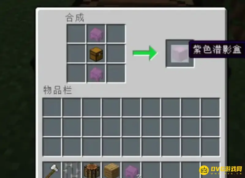1、首先需要学会合成潜影箱,开始之前我们必须要砍树合成工作台。