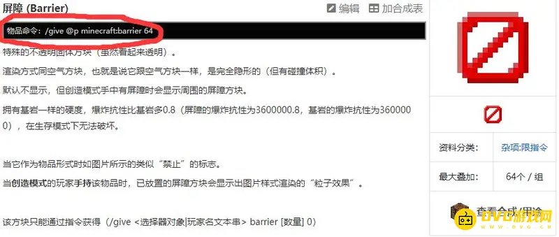 2,然后就可以发现屏障的指令了,为/give @p minecraft:barrier 64。