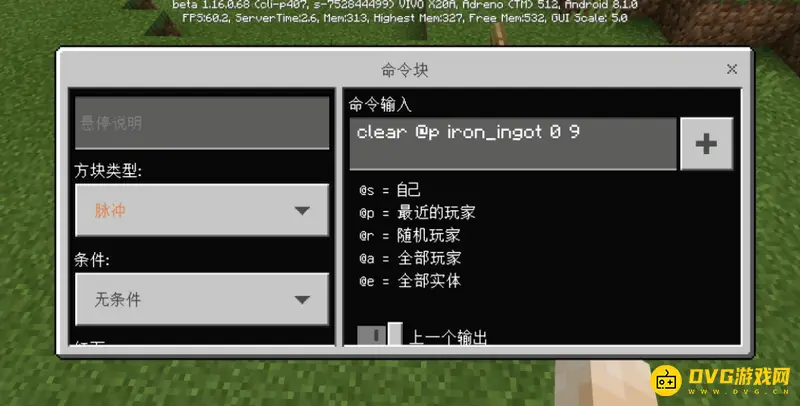 Java版:clear<目标> <物品:NBT> <数量> 基岩版:clear<目标><物品> <数据> <数量>,目标:玩家名称或目标选择器,若未填写则为命令执行者。