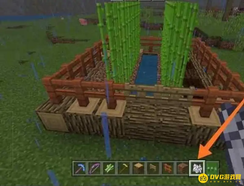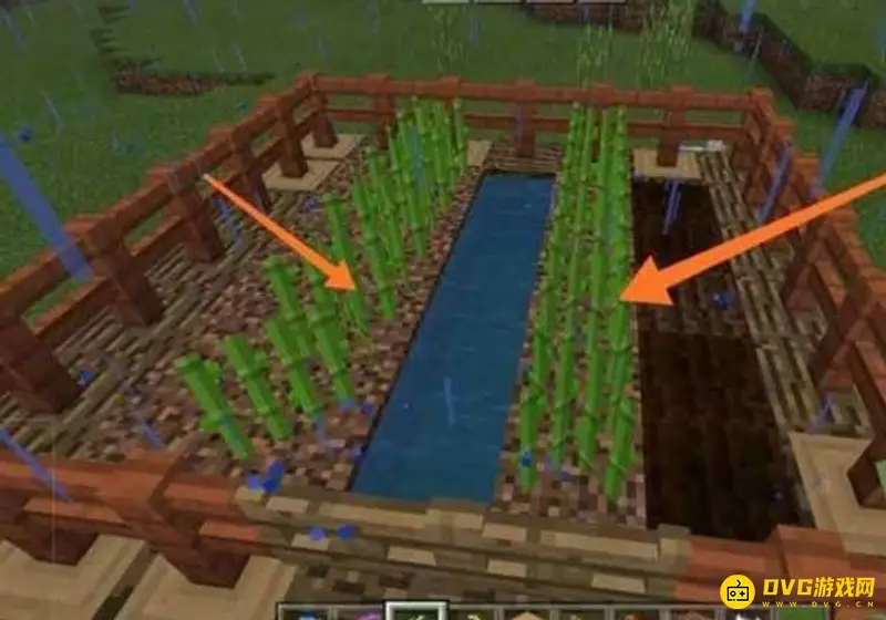 5.拿出准备好的甘蔗种子,在草方块上种植甘蔗,需要注意的是甘蔗必须生活在水边,如果没有水的话就无法存活