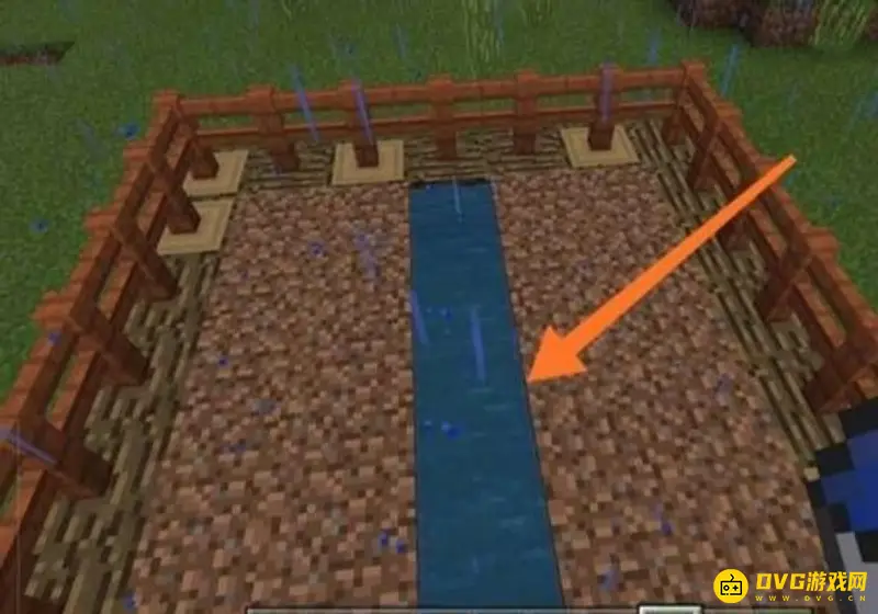 4.放上方块之后,拿出水桶在中间留好的沟槽中放入水,然后两边放,水就可以静止