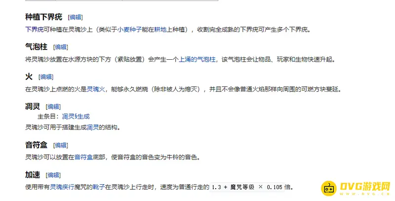 灵魂沙会降低所有站在其上方的实体(生物和玩家)的移动速度,并导致它们在其上方行走时下沉2个像素。下界疣可种植在灵魂沙上收割完全成熟的下界疣可产生多个下界疣、放置在水源方块的下方会产生一个上涌的气泡柱,该气泡柱会让物品玩家和生物快速升起、点燃的火是灵魂火能够永久燃烧并且不会像普通火焰那样向周围的可燃方块蔓延、可用于搭建生成凋灵的结构、可以放置在音符盒底部,使音符盒的音色变为牛铃的音色。