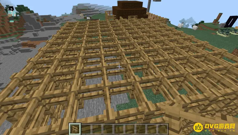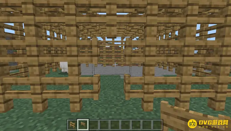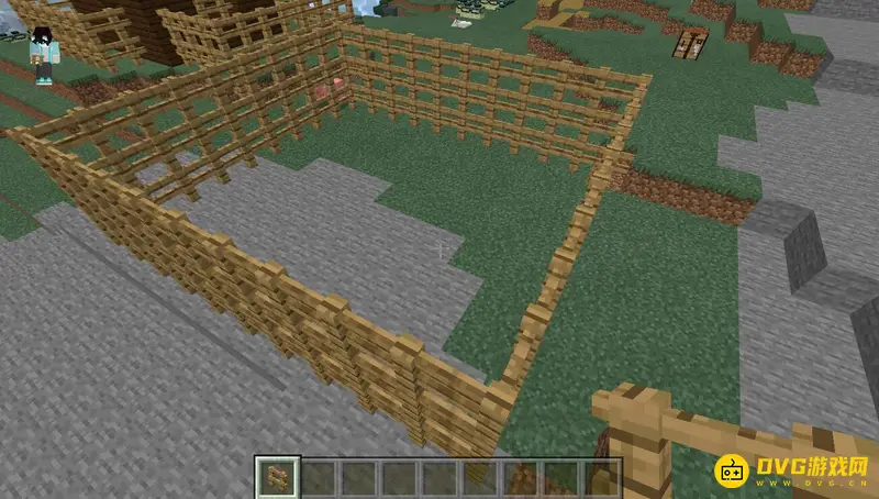 2,接着用木栅栏或者其他方块给围栏封顶,因为山羊可以跳很高。