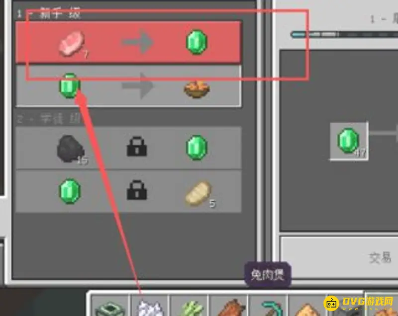 4.进入到与村民交易中,点击食物,将食物给村民,可以换一些绿宝石
