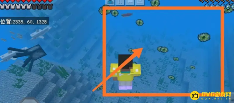 3、到了末地的位置,就在水下,跟着末影之眼往下潜。