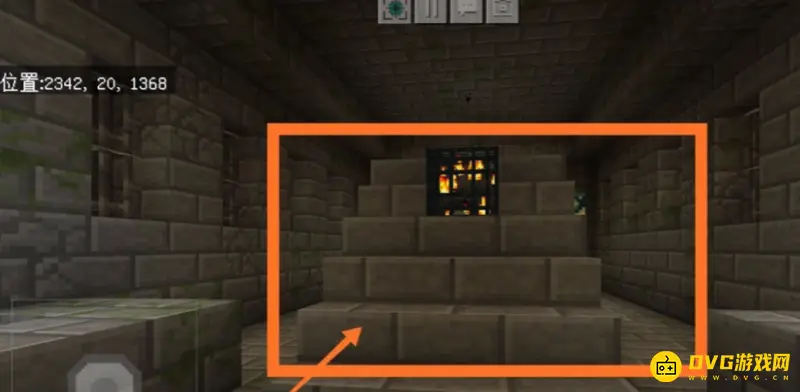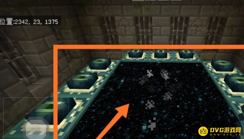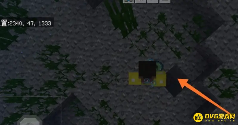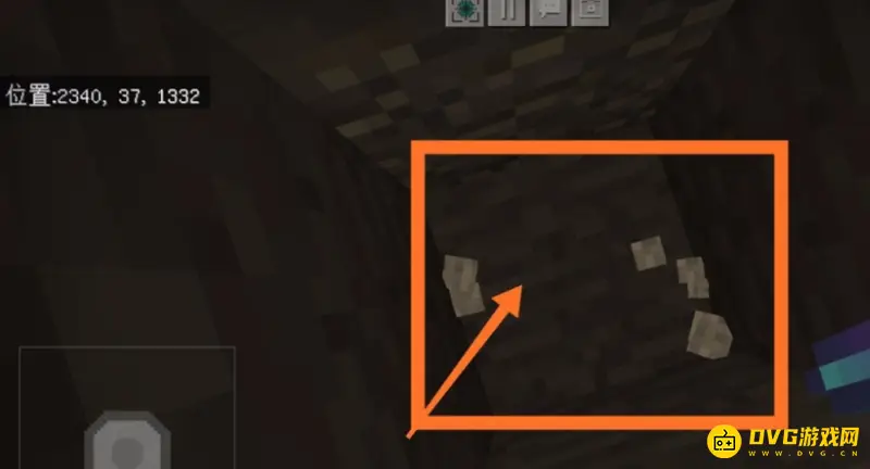 4、潜到指定位置后,不停的向末影之眼掉落位置的方块向下挖,就会发现已经挖到了地牢的方块。挖到地牢的方块之后继续向下滑,就可以走进地牢了。