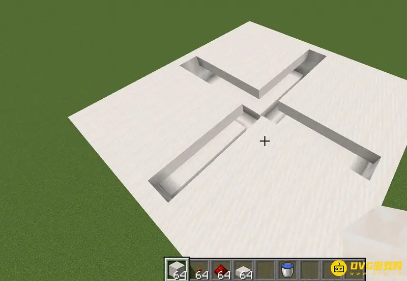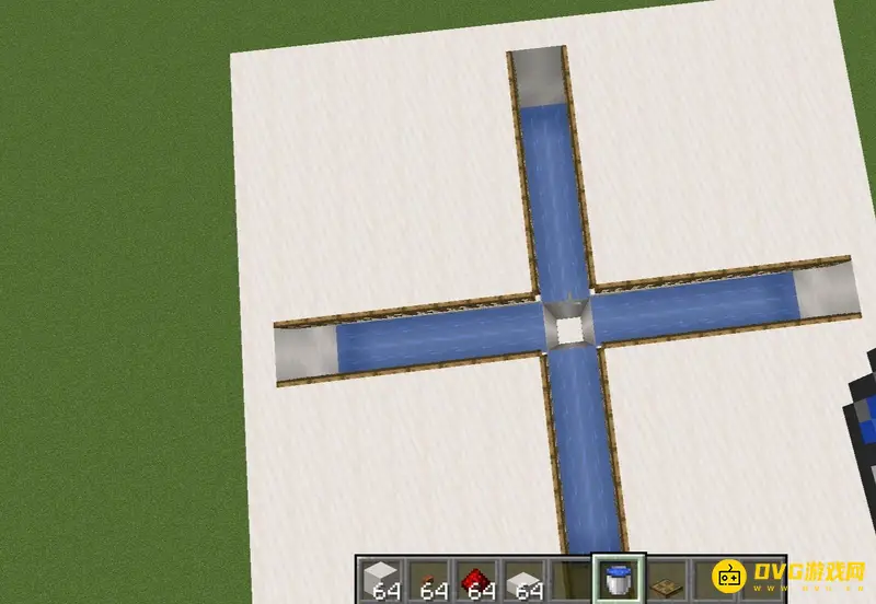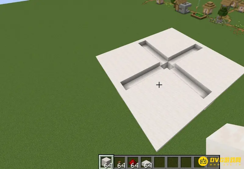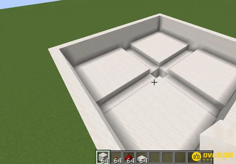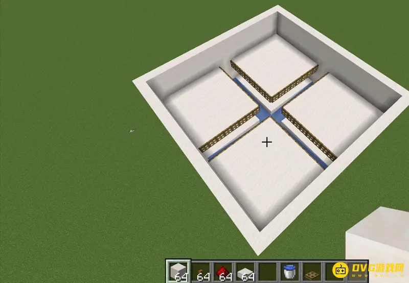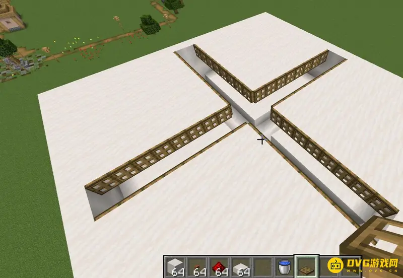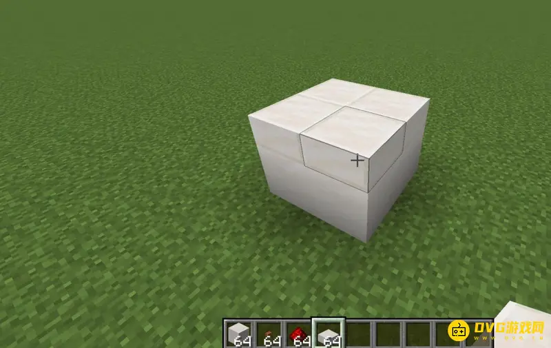 1、首先我们制作2x2的平台在地上,上面放上半砖