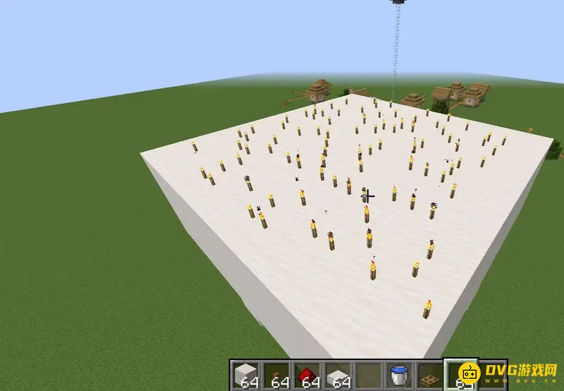 10、将上面用方块覆盖后上面插上火把,防止刷怪,这样一个刷怪塔就完成了