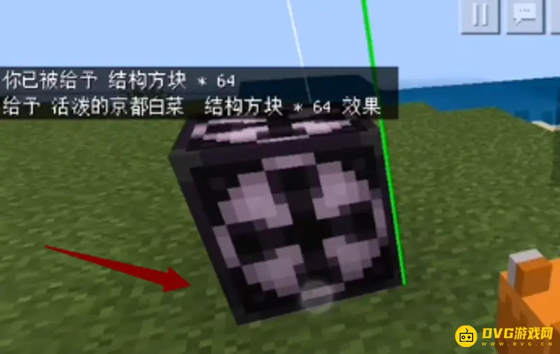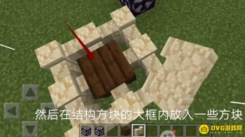 4,在结构方块的大框里放上一些方块
