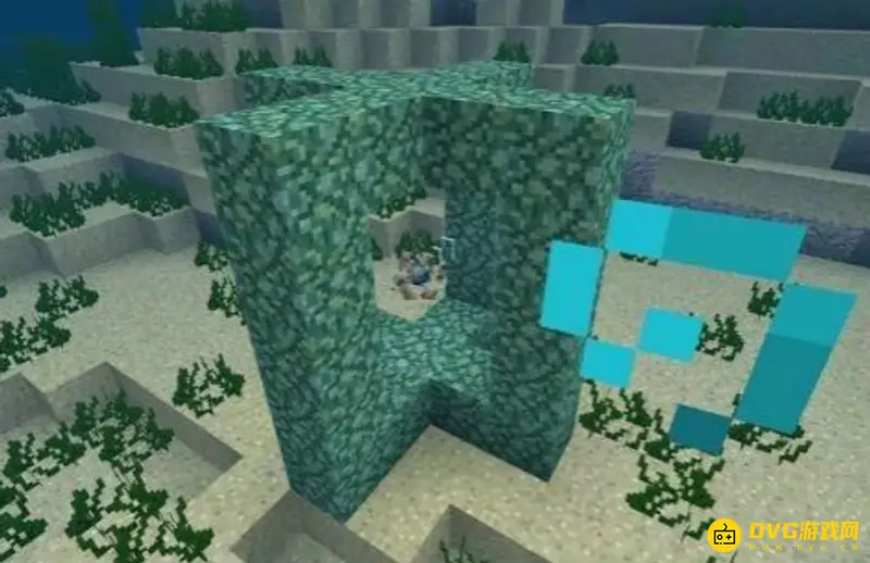 海晶石搭建为5*5的方框,潮涌核心放置在方框的中心位置(需16个方块)