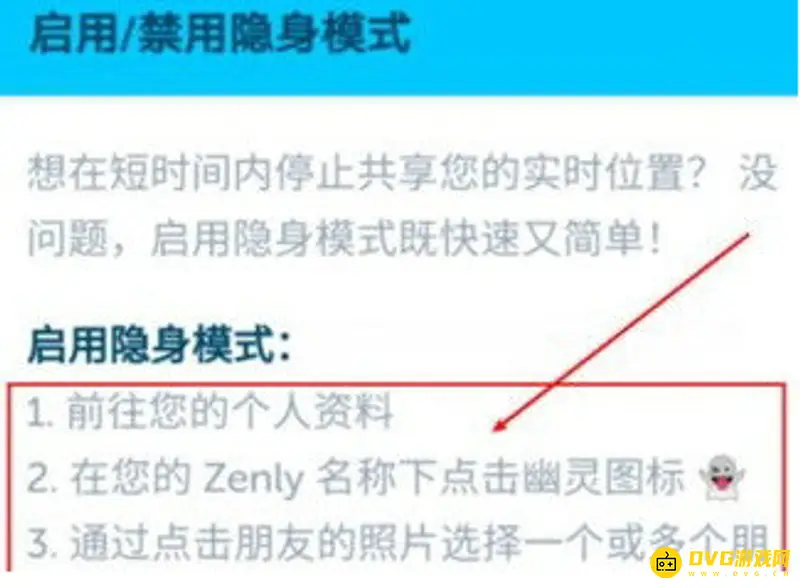 3、点击隐身模式(点击联系我们,点击联系我们,点击提问,点击发现Zenly)如下图,看到启用/禁用隐身模式
